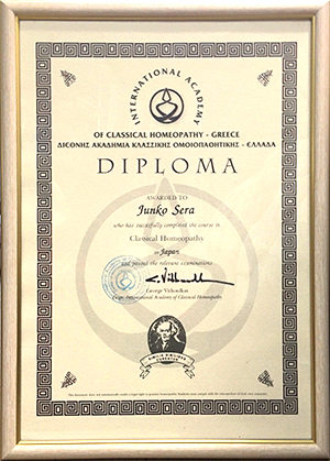 その後、ホメオパシーの創始者ハーネマンの弟子の弟子であり、スペインのバスク大学医学部教授でもある世界的ホメオパスギリシアのヴィソルカス教授の学校に辿り着き卒業(IACH日本校に入学)。