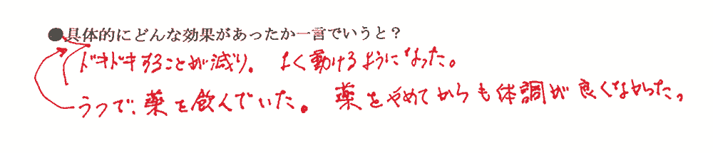 ★「1か月後には徘徊が治り2か月目にはEDが治り、1年半後にはうつ病が治り、その後才能を発揮できる仕事について認められた」 OHさま