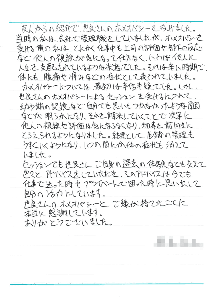 ★管理職になったけど言いたいことがいえず、ストレスばかりの毎日だったけど・・・・「思いもよらないことが原因とわかり、身体の症状が消えて店舗の管理もうまくいくように」