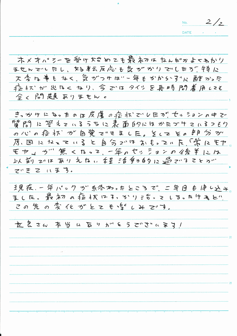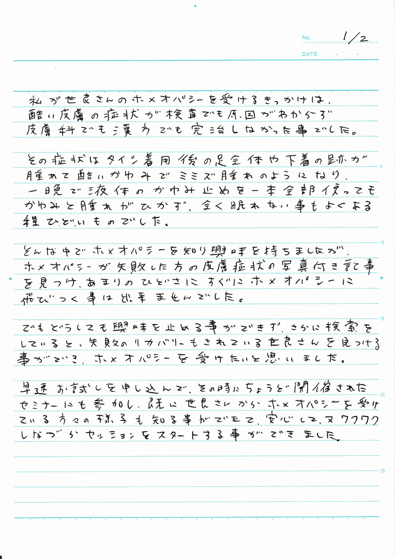 ★他のホメオパシーを受けても改善しなかった皮膚湿疹が解決してマイナス思考も改善